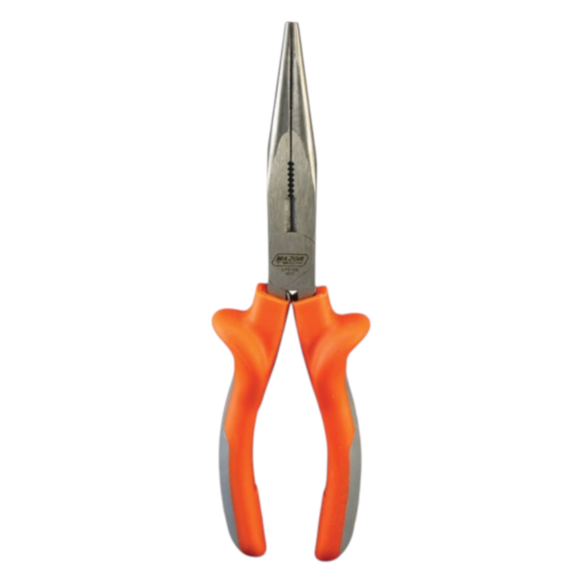 These 200mm long nose pliers are ideal for gripping, bending, and cutting in confined or hard-to-reach areas. With a hardened cutting edge rated HRC 58–63 and tested up to 10,000V, they are safe for electrical applications and suitable for both hard and soft wire. The heavy-duty insulated TPE grips ensure comfort, durability, and 1000V safety.