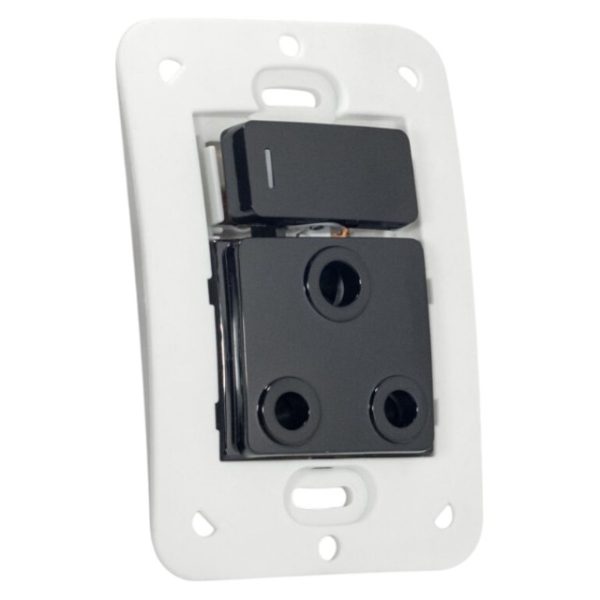 2×4 single 16A RSA socket outlet measuring 100x50mm, available in black and white. Designed to accommodate standard South African plugs, it ensures reliable power delivery for residential and commercial use. Fits seamlessly into modular systems for a neat and professional installation.