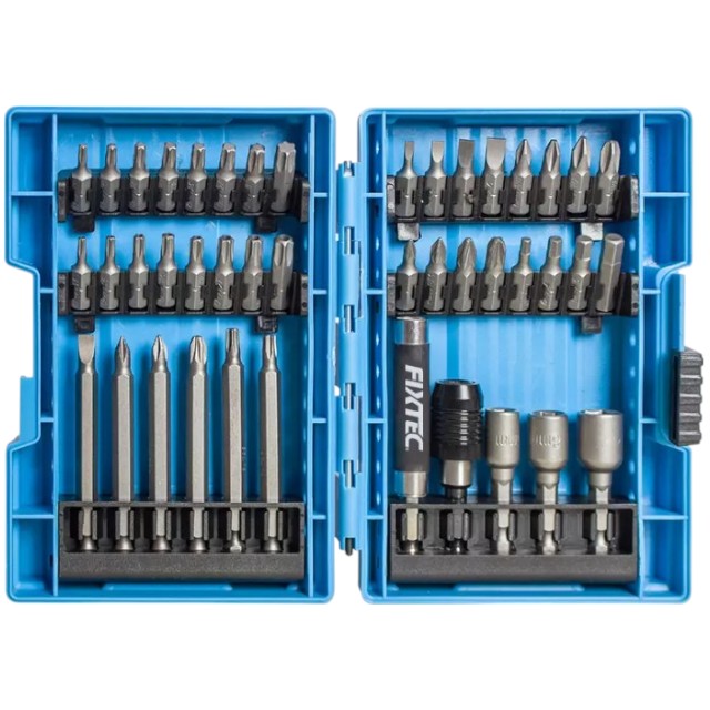 Tackle a wide range of fastening and assembly tasks with the comprehensive 43-Piece Bits Set. Neatly organized in a durable plastic box, it’s the perfect companion for DIY projects, repairs, and professional work. Packed in a sturdy plastic box for easy storage and portability.