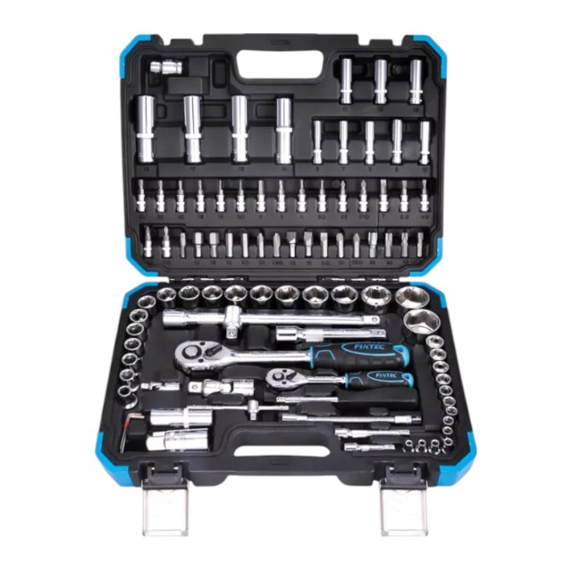 Comprehensive 94-piece socket set with both 1/4″ and 1/2″ drive sizes, ideal for a wide range of mechanical and automotive tasks. Includes a variety of sockets, ratchets, extension bars, universal joints, and screwdriver bits—perfect for both professional and DIY use. Neatly organized in a sturdy carry case for easy transport and storage.