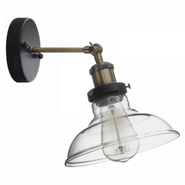 Antique Brass Wall Bracket with Clear Glass & Adjustable Arm