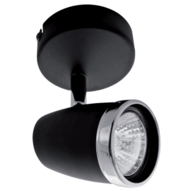 A sleek and versatile spotlight designed for targeted illumination in indoor or outdoor spaces, combining modern black and polished chrome finishes.