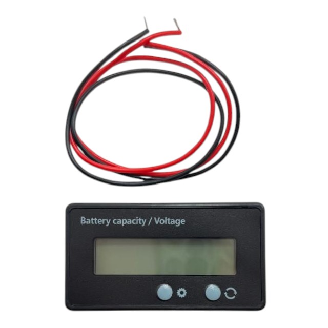 This digital battery meter provides accurate readings of both capacity and voltage, making it ideal for monitoring performance in solar systems, backup power setups, and other DC applications. Available in 1-button and 2-button models, it features a clear LCD display and simple wiring for easy installation, giving you reliable real-time battery status at a glance.