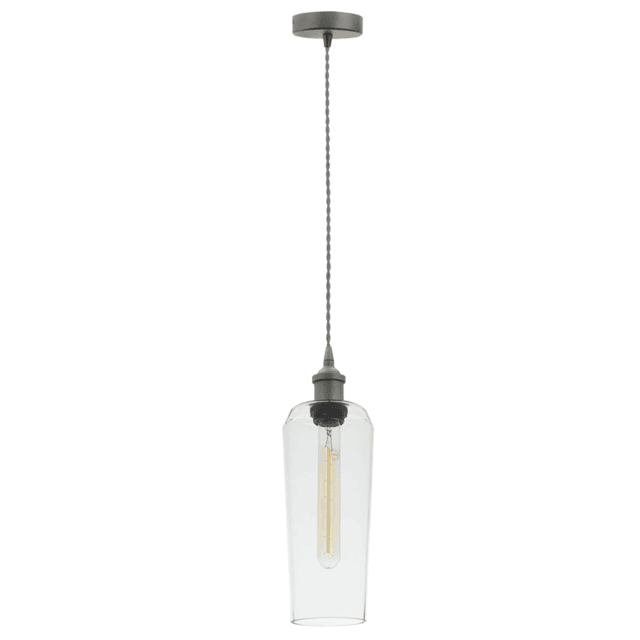 Matt nickel cord pendant with clear glass shade