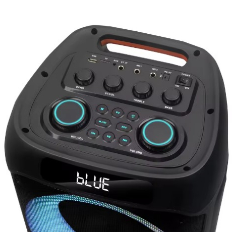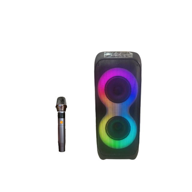 Enjoy powerful sound on the go with this portable Bluetooth speaker, designed for parties, events, and everyday entertainment. Featuring dual 8-inch speaker units and colourful LED lights, it delivers an immersive audio and visual experience with multiple input options for versatile use.