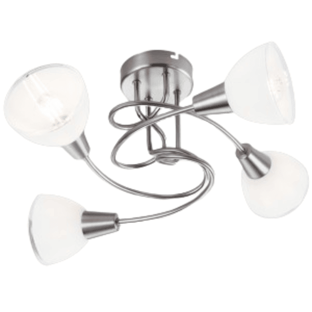 Enhance your home with this elegant 4-light Satin Chrome Ceiling Fitting, designed with smooth curves and White Glass shades for a soft, warm glow. Its modern yet timeless design makes it ideal for lounges, bedrooms, dining rooms, and hallways.