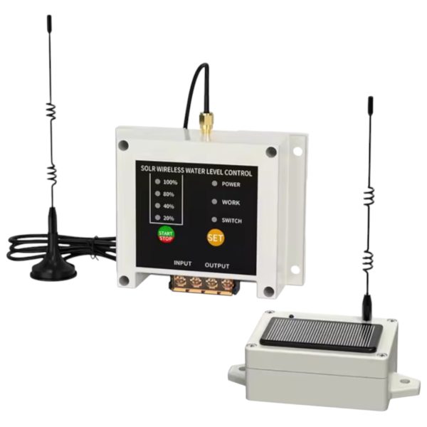 The Solar Wireless Water Level Controller offers a reliable, interference-free solution for remotely monitoring and controlling water pump systems over long distances. Featuring wireless communication between the transmitter and controller, it eliminates the need for complex wiring and ensures stable performance even in multi-storey buildings. Ideal for water tanks, wells, and agricultural irrigation, it can operate effectively across distances of up to 1,000 meters (barrier-free), or control pumps in buildings ranging from 1 to 15 floors. The transmitter is powered by a built-in lithium-ion battery with solar charging capability, ensuring uninterrupted operation.